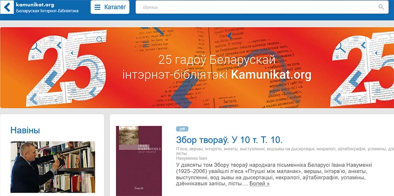 Kamunikat — интернет-библиотека, специализирующаяся на беларуской литературе. В этом году проекту исполняется 25 лет. На сайте проекта хранится более 60 000 публикаций — это книги (и аудиокниги), оцифрованные версии газет и журналов и т.д. С 2021 года Kamunikat ведет также издательскую деятельность, выпущено уже 20 книг современных беларуских авторов, напоминает «Медиазона».