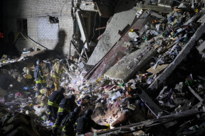Глава Херсонской обладминистрации Александр Прокудин опубликовал видео многоэтажки, которая попала под ракетный удар этой ночью. На нем видна поврежденная и выгоревшая секция многоквартирного дома.